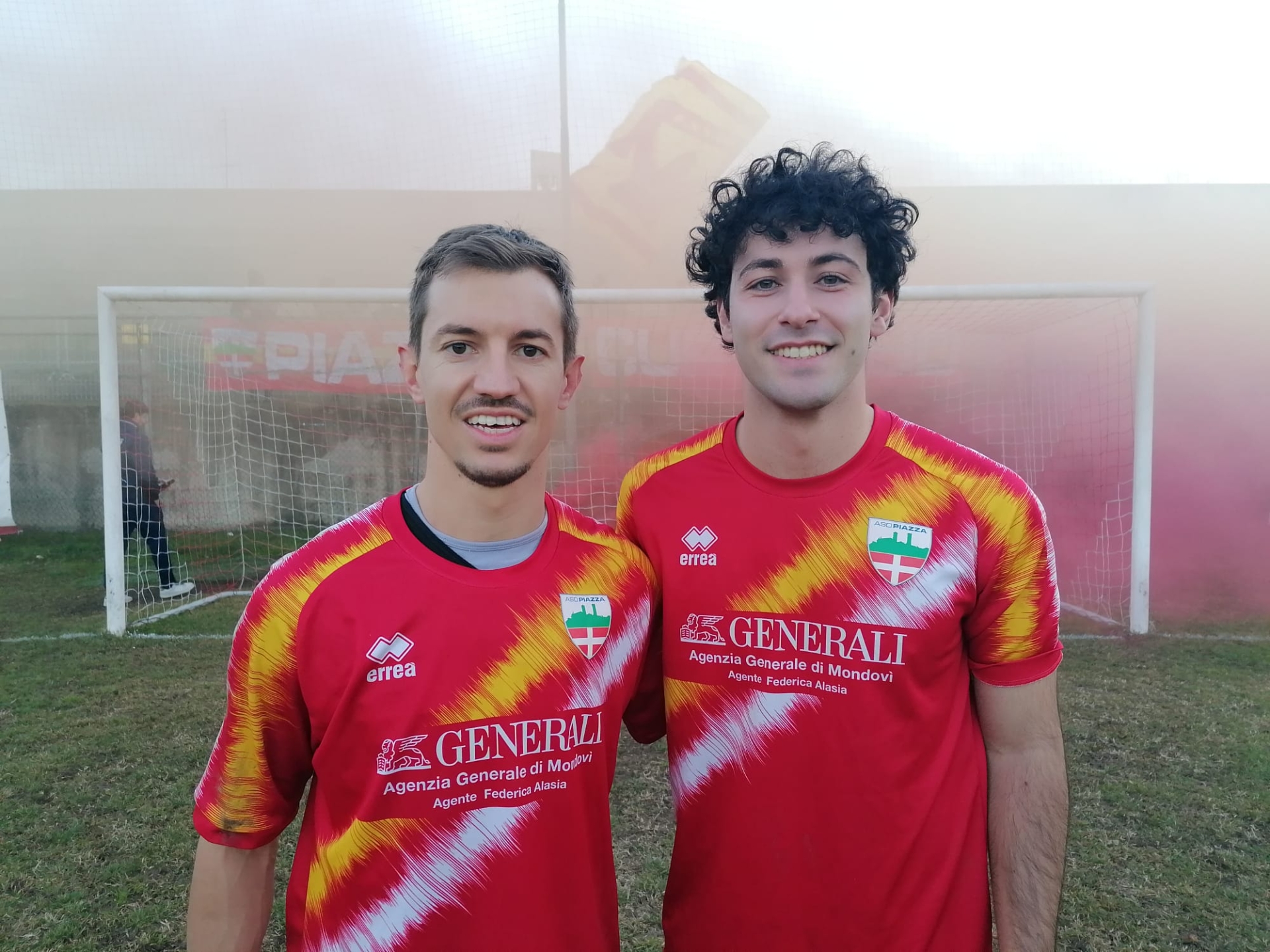 In Prima Categoria cade il Bisalta che aveva ritrovato la vetta nel recupero di mercoledì ed ora corre il rischio di essere sopravanzata proprio dal San Sebastiano. Decisive a Chiusa con i fossanesi tre palle inattive: la sblocca sotto porta il monregalese Marco Formento sugli sviluppi di una punizione al 21' , quindi al 33' raddoppia Santini; Gomes Aro con una perla dalla distanza la riapre a pochi istanti dall'intervallo, ma su un corner al 59' ancora Santini, tutto solo sul secondo palo, firma il tris del San Sebastiano. Dopo alcune partite proibitive, il Piazza torna ad affrontare sul suo campo una squadra in lotta per non retrocedere come l'Area Calcio e non sbaglia. Apre Lugliengo deviando di testa una splendida punizione di Di Fede, chiude Muça dopo grande assist di Benzo (nella foto sotto i giallorossi Lugliengo e Muça)