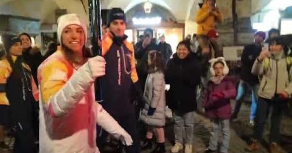 La penultima tedofora in via Roma era la campionessa azzurra di sci alpino Marta Bassino che accompagnata dal calore della folla ha consegnato la fiamma olimpica ad Elisa Rigaudo qui la fotogallery