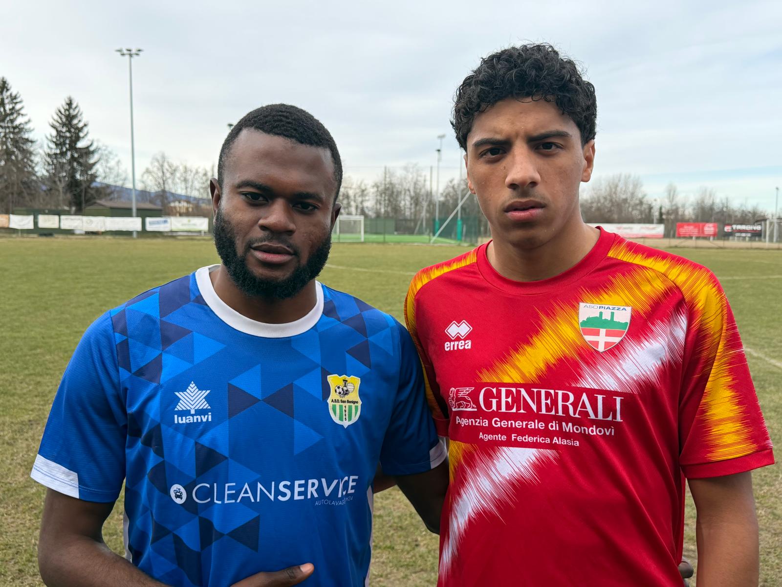 In attesa del posticipo serale del Bisalta (vincente in settimana 3-1 sul Garessio) a Fossano con il Salice, una domenica dai due volti. Il Piazza generoso sfiora il pari in 10 (espulso Gonella) in casa del San Benigno: incassato su punizione l’1-0, pareggia grazie al rigore conquistato da Niba - sotto in foto insieme all'ex Piazza, Mfuka - e trasformato da Di Fede. Un altro errore difensivo costa la rete del 2-1 locale. Nonostante l’inferiorità numerica i giallorossi si riversano in avanti ma non trova il pareggio (in realtà lo troverebbe con Niba ma l’arbitro annulla per un dubbio fuorigioco).