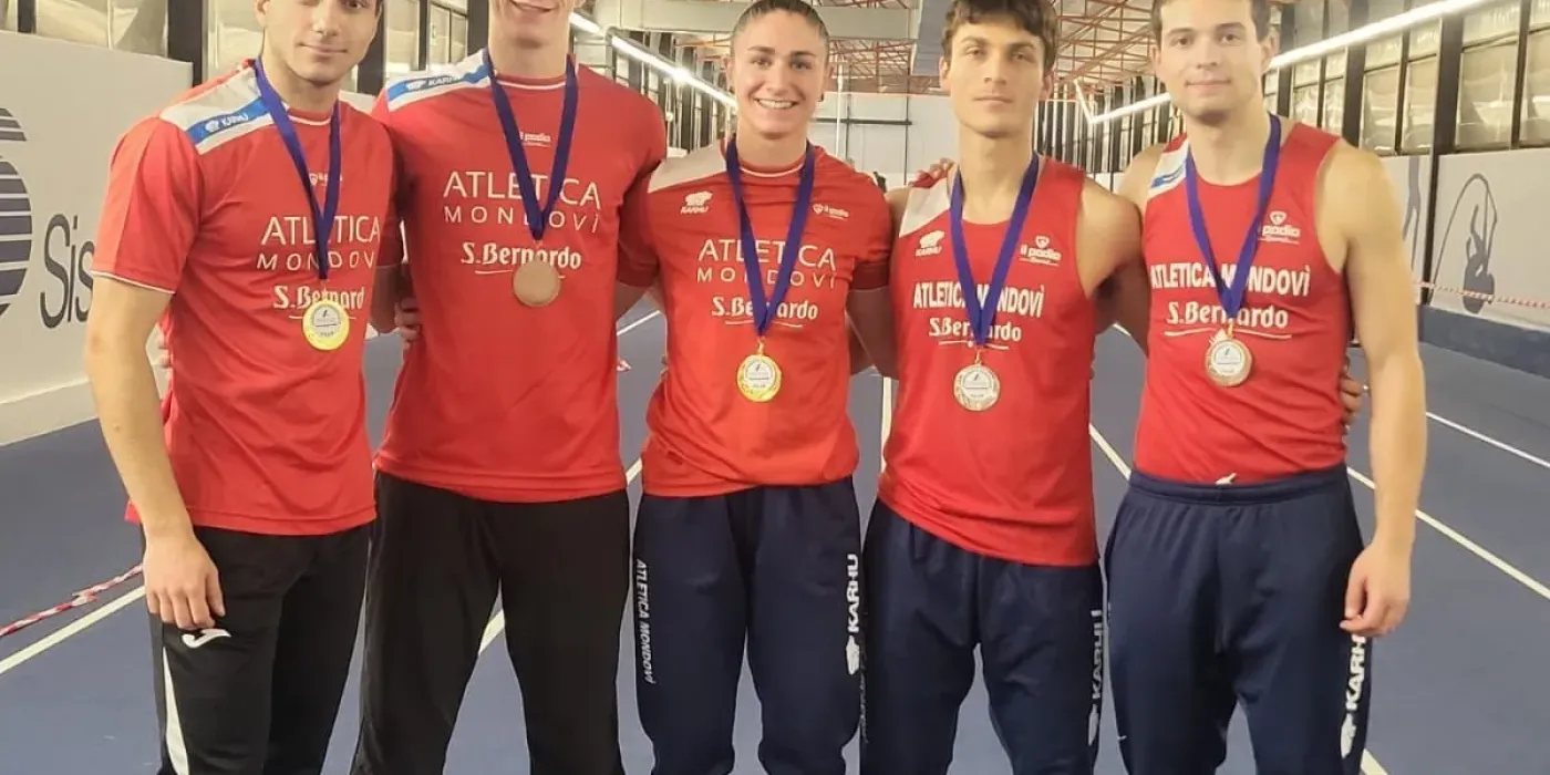 Altro pieno di medaglie (e di personali) nel rettilineo della Sisport a Torino, domenica, per l’Atletica Mondovì. Due titoli con lo Junior Alessandro Bedeschi vincitore in finale in 6"95 (7"00 in batteria), con il PB mette in riga il cussino Ceraulo ed il compagno in biancorosso Samuele Vittone (record per lui, 7”06, ad un centesimo dal pass tricolore) - e Rachele Torchio che domina le Promesse in 7"43 migliorando di 5 centesimi il tempo delle batterie e realizzando il suo personale. Seconda e terza piazza U.23 con Simone Milanesio e Francesco Viotti, rispettivamente in 7”00 e 7”01 (nuovo personale al rientro dopo 18 mesi difficili)