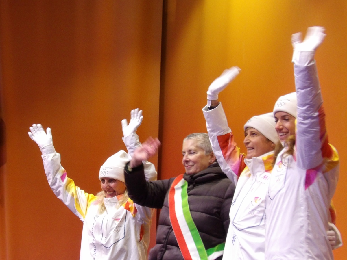 Marta Bassino con la fiamma olimpica in Via Roma